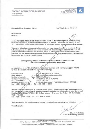 400 - 880 - 3995作為ZODIAC AEROSPACE集團(tuán)下屬的一個(gè)重要子公司,法國(guó)雷恩母公司PRECILEC在過去的一年里經(jīng)受住了全球經(jīng)濟(jì)危機(jī)及歐盟金融危機(jī)的考驗(yàn),并取得了非常矚目的成績(jī),現(xiàn)在為了應(yīng)對(duì)全球范圍內(nèi)的戰(zhàn)略發(fā)展,PRECILEC公司更名為ZODIAC ACTUATION SYSTEMS,其集團(tuán)公司下屬經(jīng)營(yíng)品牌及產(chǎn)品隸屬關(guān)系保持不變。